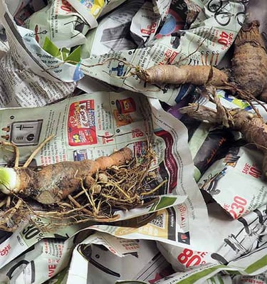 Ons saailinge is klein en broos, en daarom gee ons hulle ’n verpakking wat veilig, natuurlik en plantgereed is. Met die Snail Roll & Soil-tegniek word elke saailing se wortels in ’n bondeltjie kompos en doek ingerol – soos ’n slakdoppie wat dit koester vir die reis na jou toe.